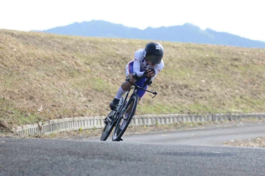 この大会は諫早市の長田バイパスに並走する完全クローズドな周回コース(1周約6.7km)で行われ、距離別にカテゴリー(3.5km/20km/40km)が用意されています。