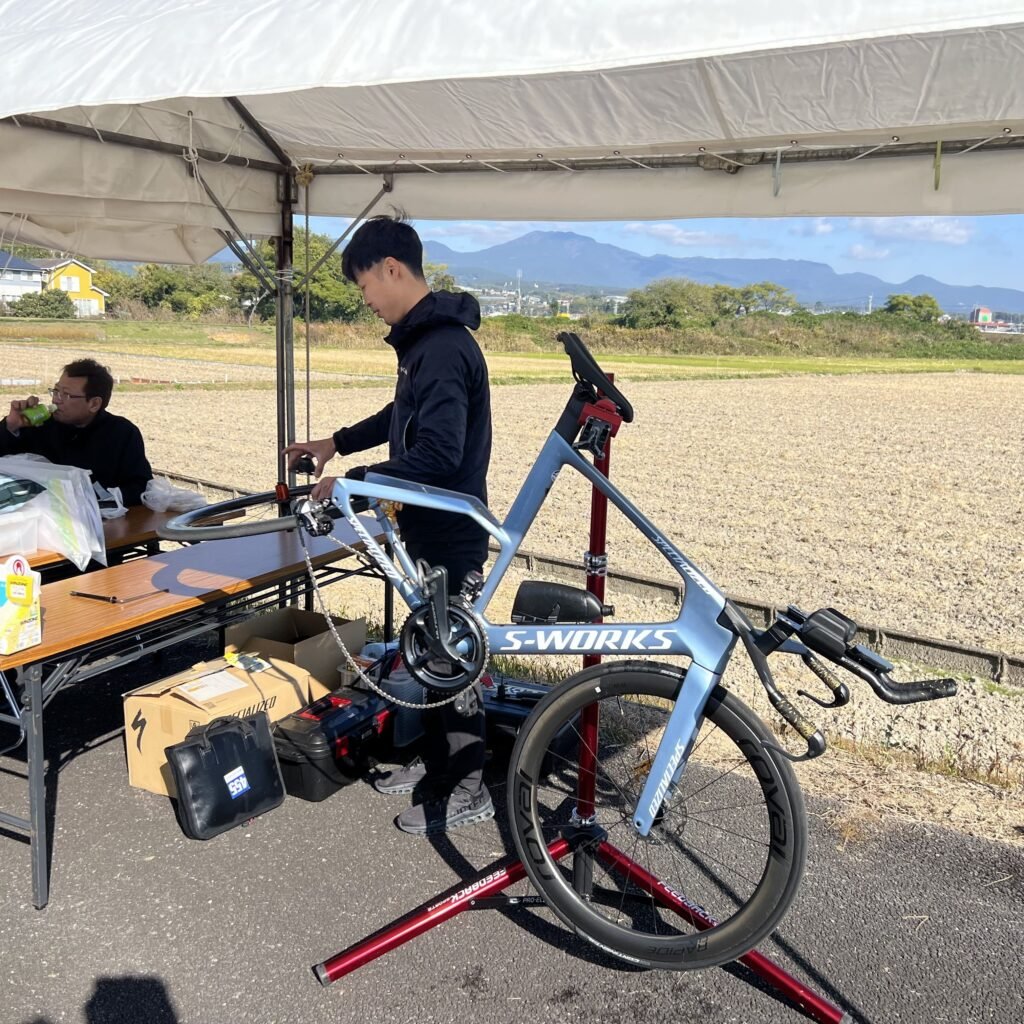私は今回メカニックサービスと選手で出走でしたが、レースのスタートが個人種目では一番最後だったため、自分が走るまではメカニックのブースで選手のバイクトラブルに備えました。
