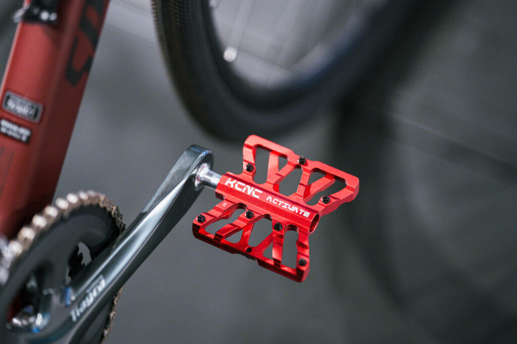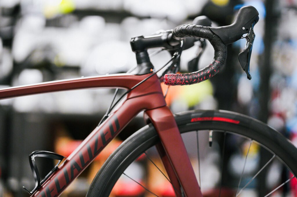 バーテープとペダルを“レッド”で統一。落ち着いた中にも力強さが感じられる仕上がりとなりました。