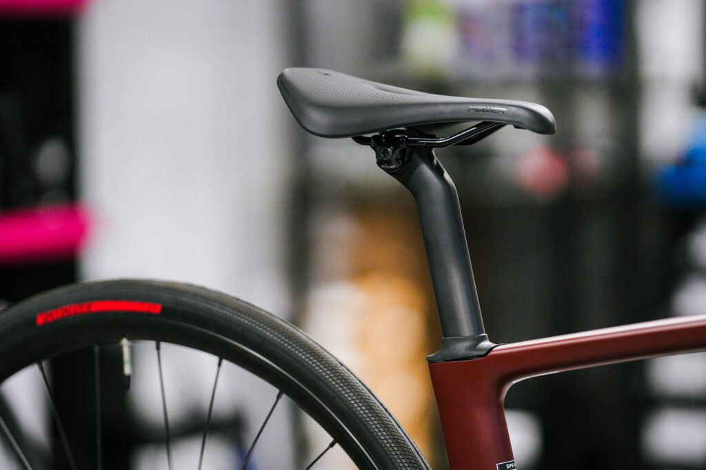 ドロップドクランプ構造により、シートポストがしなやかに動作。