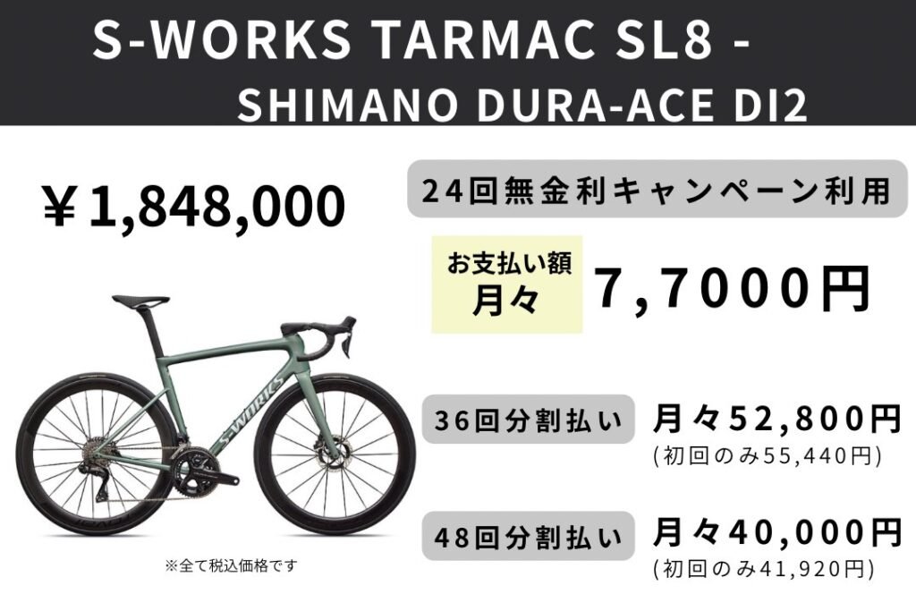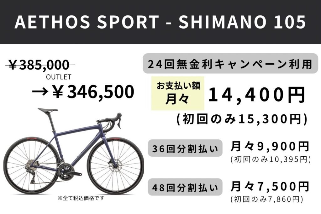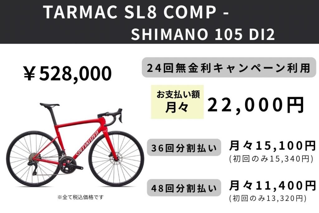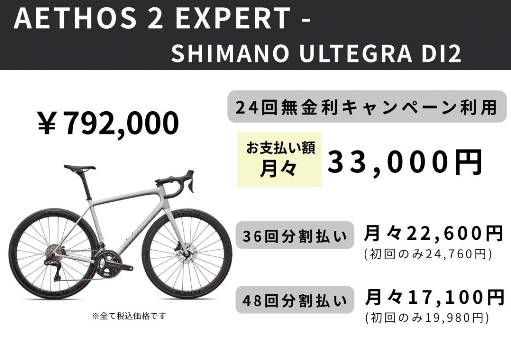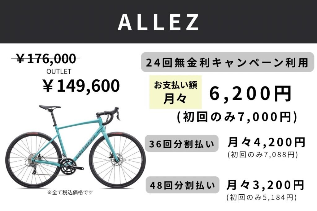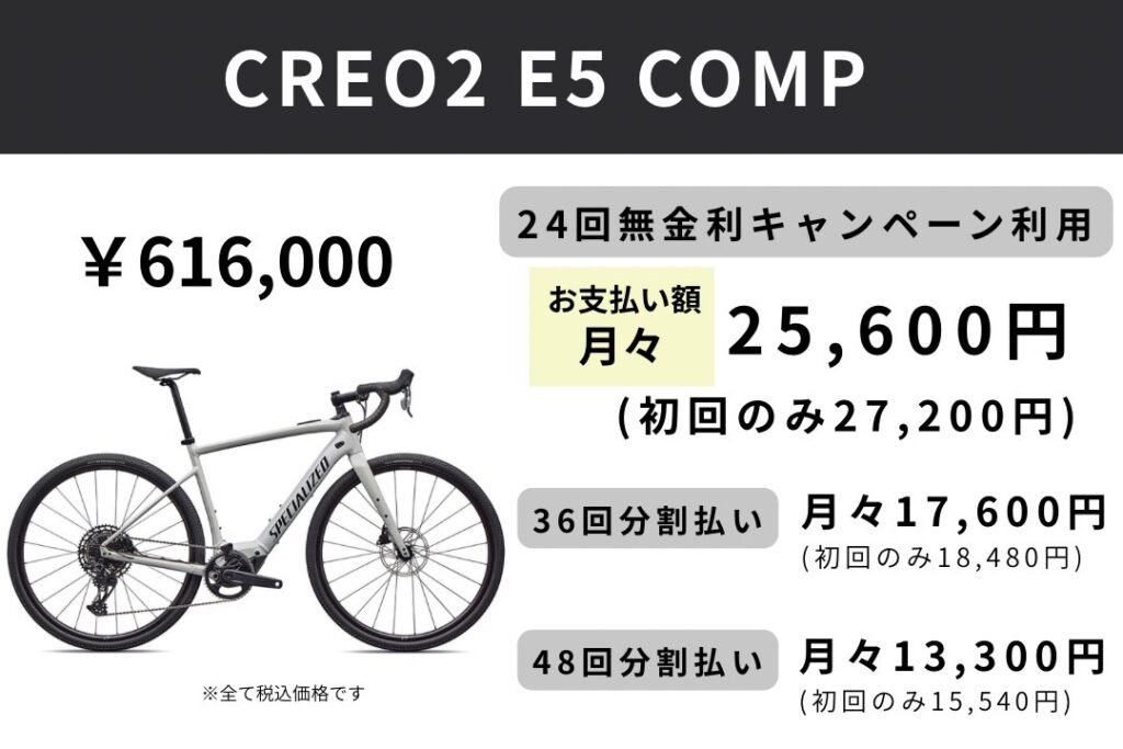 スペシャライズドは、2026年2月27日(金)から5月15日(金)までの期間限定で、24回払いまでは金利手数料無料、36回&48回払いは金利手数料の一部をスペシャライズドが負担するキャンペーンを開催いたします。対象のお支払いでショッピングクレジット(ジャックス)をお選びいただくと、分割払いの金利手数料が24回まで無料となります。