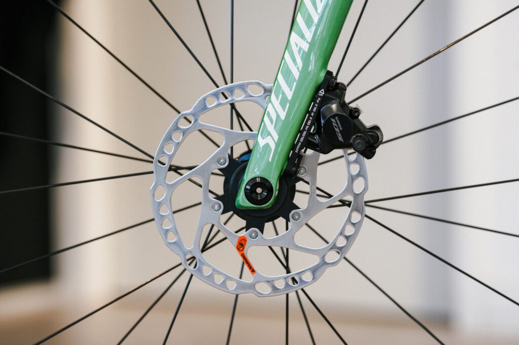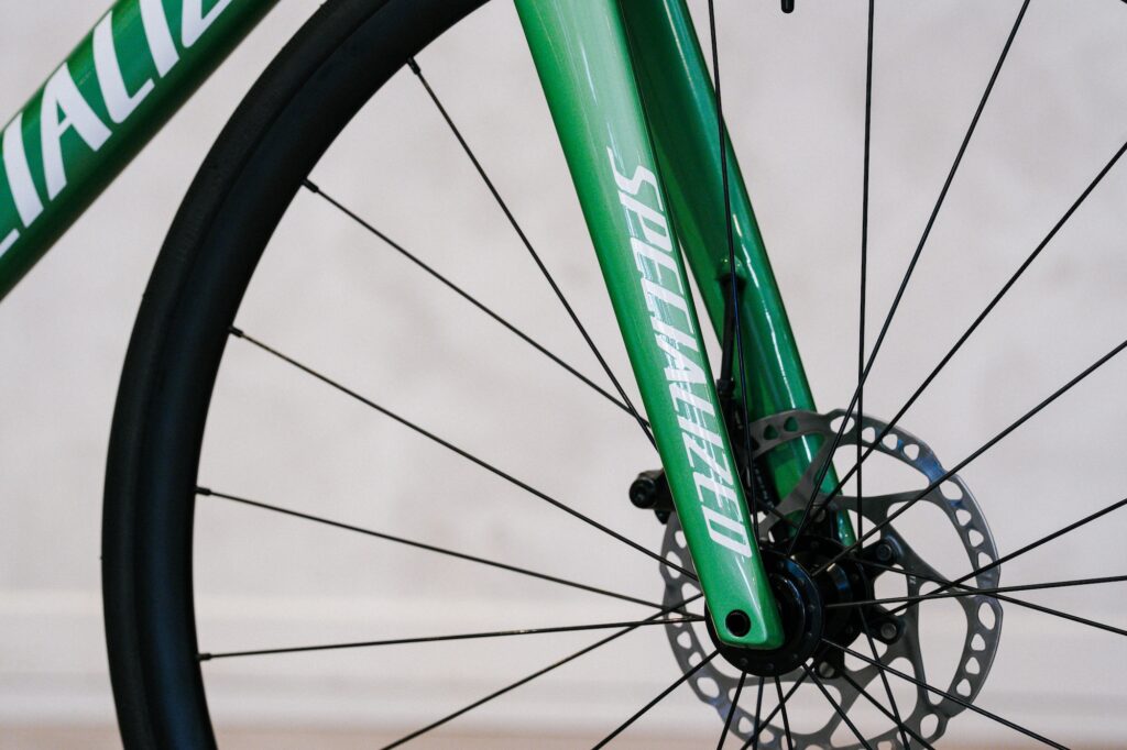 TARMAC SL7 SPORT 2026年モデルの新色、グロスオアシスティントオーバーシルバーダスト/ホワイトカラーを納車しました。淡いオアシスグリーンをベースに、シルバーダストが重なる透明感のあるカラーで、爽やかさと上品さを兼ね備えた仕上がりです。