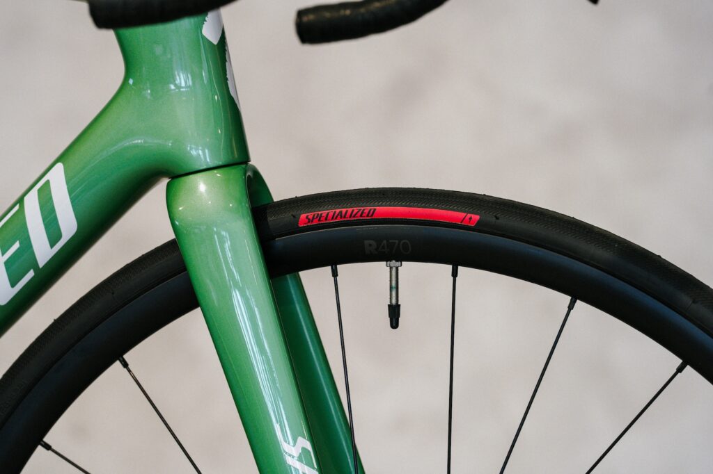 ホイールにはDT R470 Discを採用。高い信頼性と剛性を兼ね備えたアルミホイールで、安定した走行性能が特徴です。タイヤにはSpecialized Turbo Proを装備。転がり抵抗が少なく、グリップ力と耐久性のバランスに優れたタイヤで、日々のライドからロングライドまで快適な走りを支えてくれます。