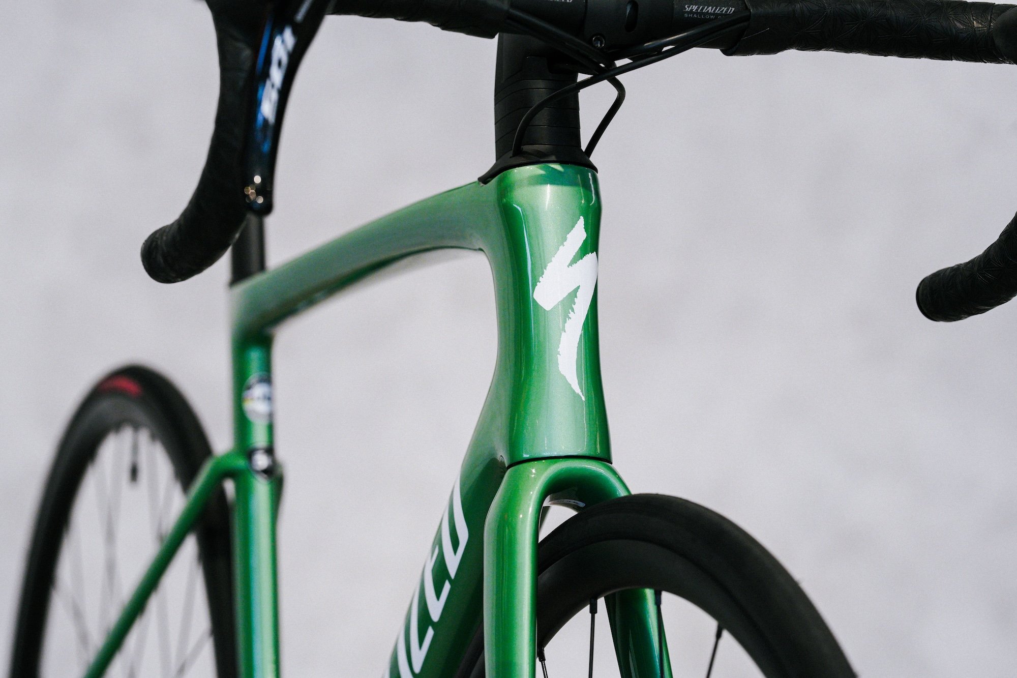 TARMAC SL7 SPORT 2026年モデルの新色、グロスオアシスティントオーバーシルバーダスト/ホワイトカラーを納車しました。淡いオアシスグリーンをベースに、シルバーダストが重なる透明感のあるカラーで、爽やかさと上品さを兼ね備えた仕上がりです。