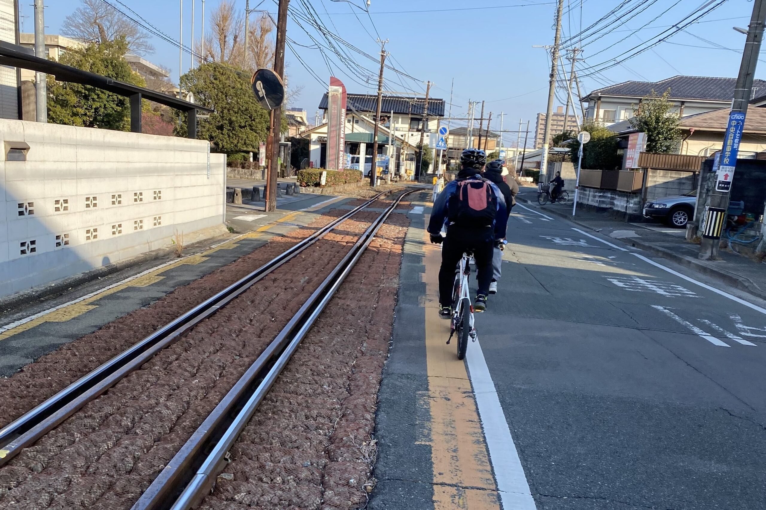 途中走行するルートに熊本電鉄藤崎線と並走する区間があり、道路と線路の間の仕切りがなくて見慣れない光景に少しワクワクしました。