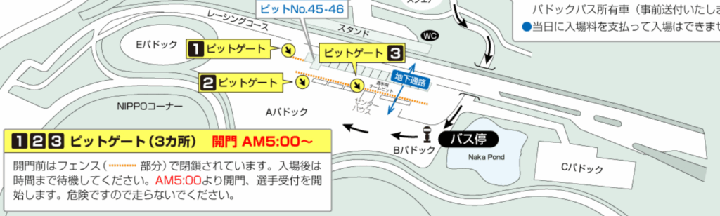 ピットゲート2,3はそこまで並んでいなかったので穴場です。