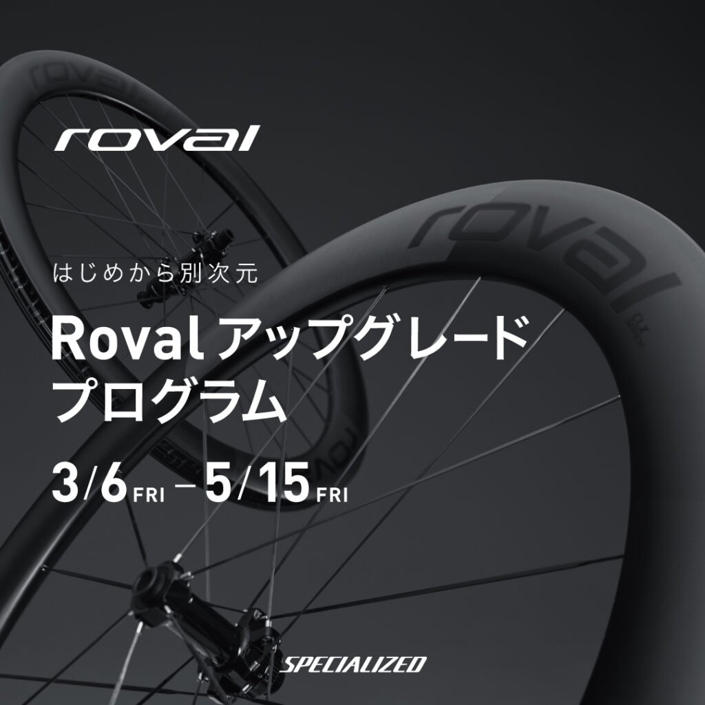 完成車をご購入のタイミングでROVAL製品(ホイール・ハンドル・コックピット)が15%でご購入いただけます。