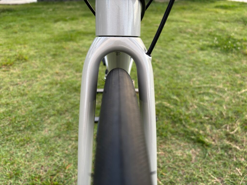 さらに、フルカーボン製のフロントフォークを採用しているので、路面からの振動もマイルドに。