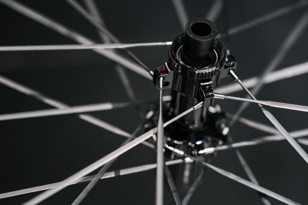 今回のモデルチェンジで最も注目すべき点の一つが、スポークの変更です。新たに採用された「ARRIS社製 Rovalエアロコンポジットスポーク」は、RAPIDE CLX III 同様に、あえて純粋なカーボンスポークにせず、樹脂と混ざったスポークを採用することで、高剛性かつ、振動吸収性が高まり、優れた乗り心地も実現しております。またこのスポークのみで前回のALPINIST CLX IIから103.5gの軽量化に成功しています。