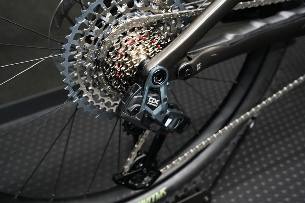 コンポーネントはSRAMのGX Eagle T-Type AXSドライブトレインを採用。無線変速で一切シフト類がなく、滑らかで正確なシフトチェンジを実現します。