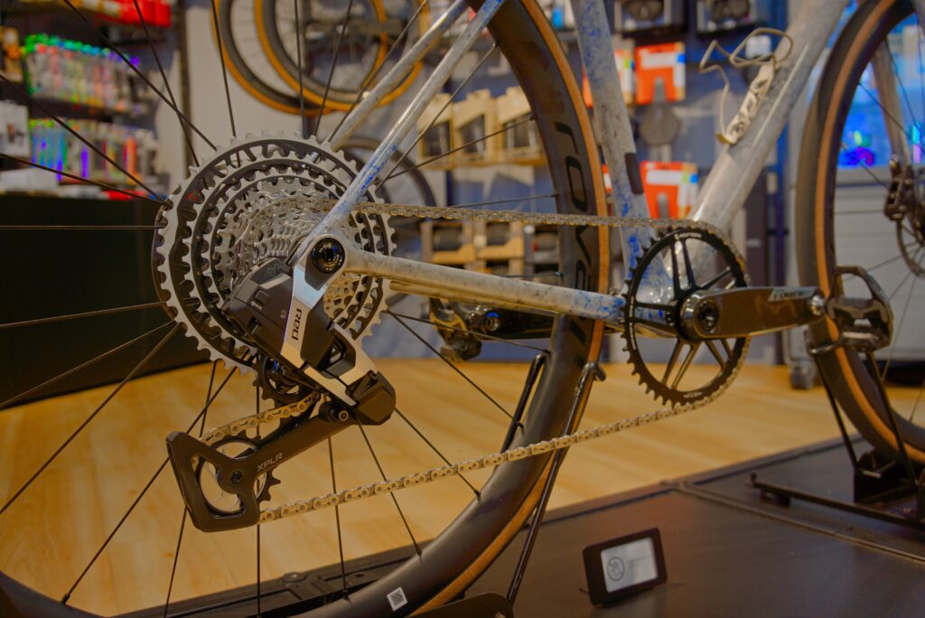 メインコンポにはSRAMのXPLRを採用し、前回よりチェーンリングを少し大きめに設定。グラベル的な拡張性を残しながら、ロードとしての走りやすさもしっかり確保しました。