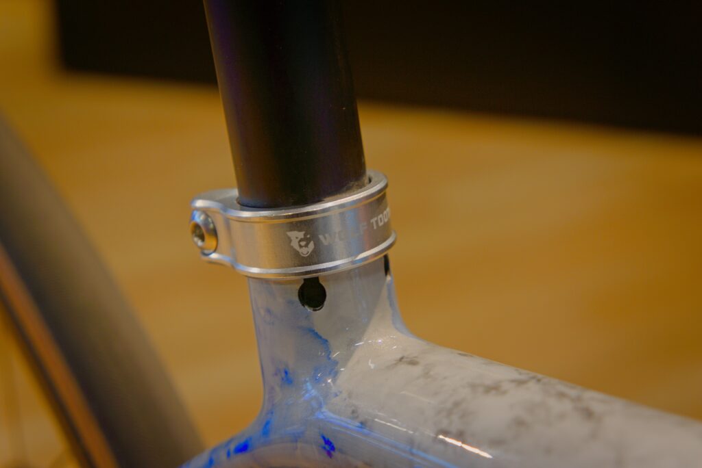 小さなこだわりとして、ロックリングとシートクランプにはWolf Toothの“ローシルバー”を使用。
