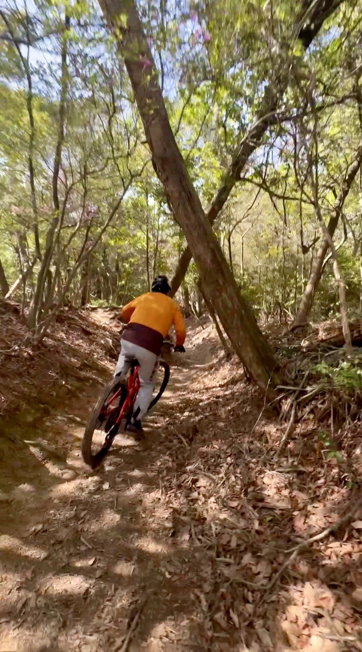 舗装路でのアプローチから、箕面トレイルの上り返し、下り、ジャンプセクションまで