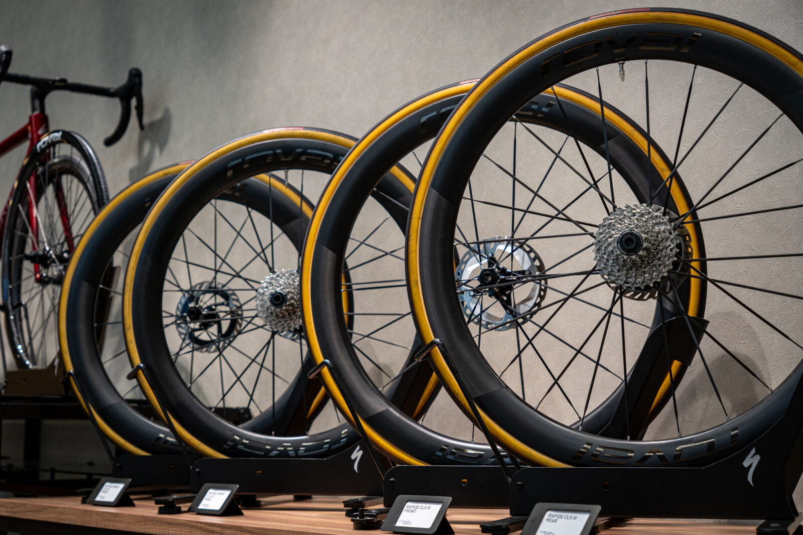 バイクやホイールはもちろん、多くのプロ選手から世界各国のサイクリストに愛されているサドルやシューズまで多くの製品を実際に手に取ってお確かめいただけます。