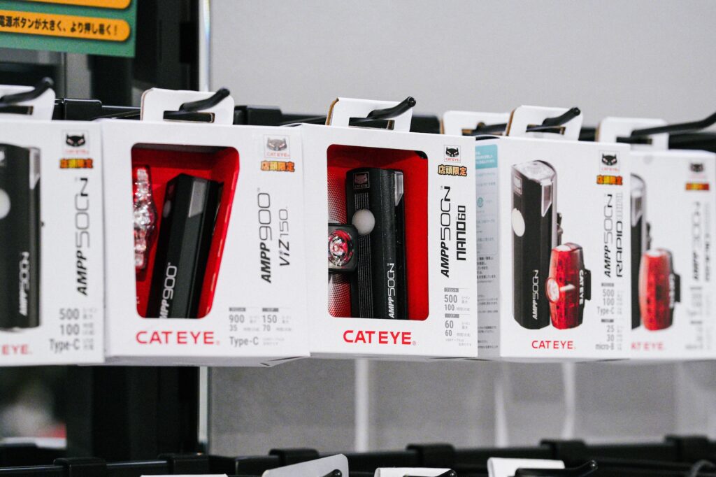 スペシャライズド福島は、日本の大手自転車部品メーカーCAT EYE(キャットアイ)のプレミアムディーラーです。キャットアイ製品を幅広く豊富に取り扱っており、一部の限定モデルや展示品も扱っている、キャットアイが認定する優良販売店のことです。これらの店舗では、通常では手に入りにくい限定モデルの購入や、実物を見て・触って確認できるのが大きな特徴です。ぜひ店頭でご覧ください。
