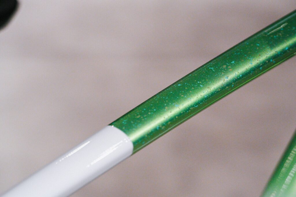 フレームカラーは特徴的なオアシスティントフレークシルバーモーニングミスト/パープルヘイズ。グラベルの土埃にも舗装路の朝日にも映える、フィールドを選ばないCRUXにふさわしい静かで強いカラーです。
