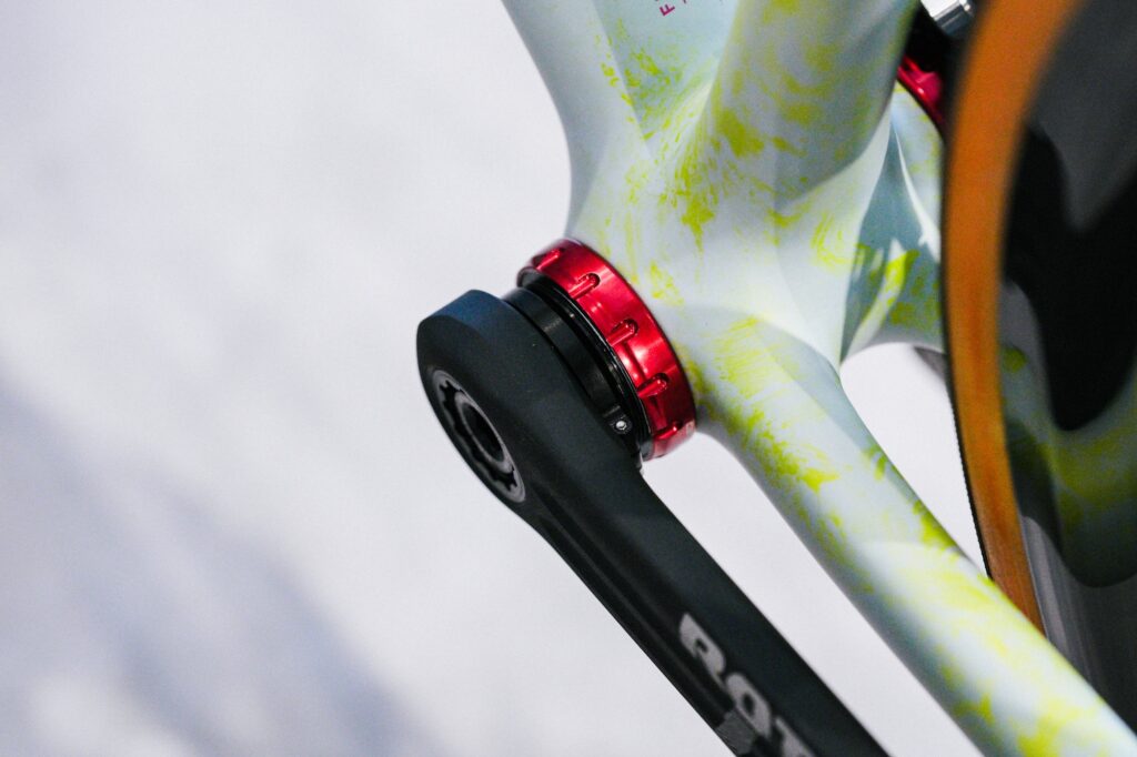 BBは、CERAMICSPEED(セラミックスピード)を入れました。セラミックベアリングの代名詞とも言えるCERAMICSPEEDは、優れた回転性能と耐久性、規格のバリエーションの豊富さで人気があります。カラーリングもこだわってレッドカラーを選びました。