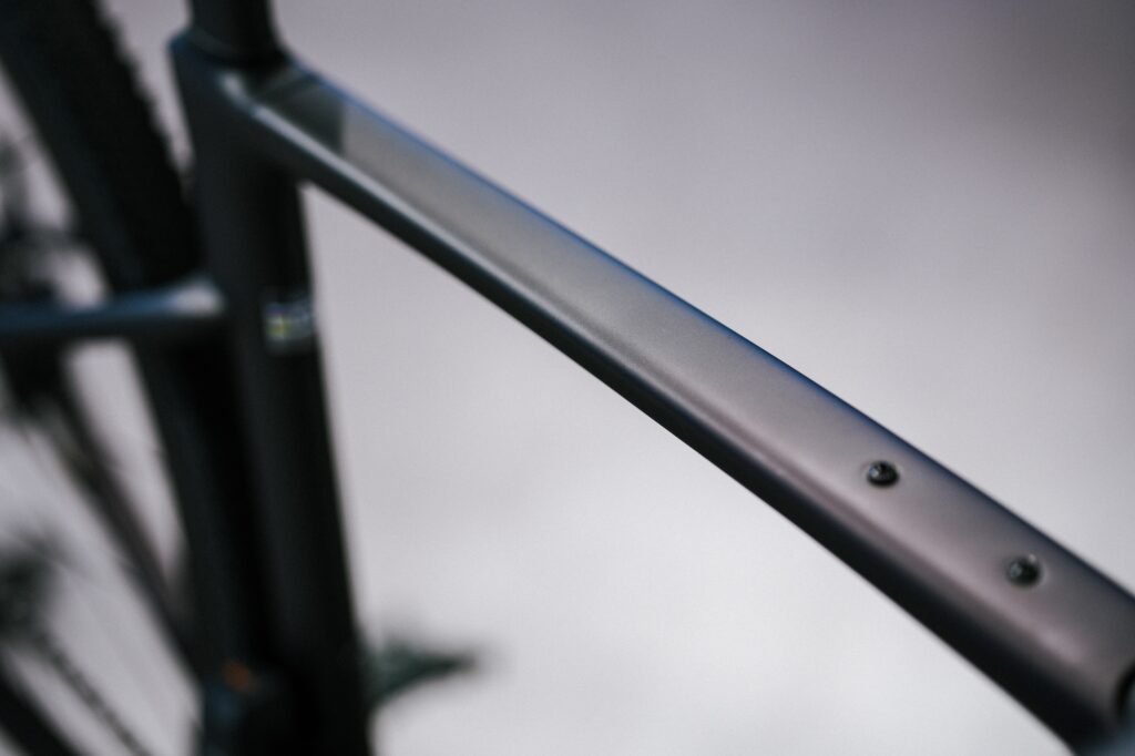 フレームは艶消しの落ち着いたカラーリング。光の加減でパープルやブラウンにも見える塗装になっています。