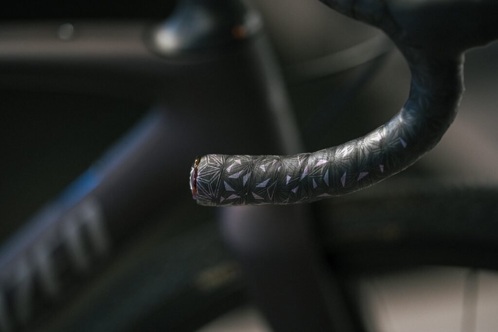 バーテープは、ブラックカラーから、オイルスリックカラーに。バイクのカラーとの相性抜群で統一感がでました。SUPACAZ(スパカズ)のバーテープはグリップ感に優れ、汗をかいても握りやすいのが特徴です。