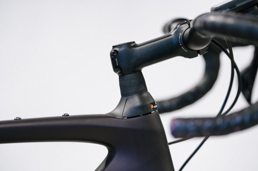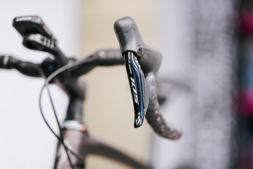 コンポーネントはシマノ105Di2を搭載。Di2は電動シフトの意味です。従来の変速動作が不要で、ボタンを押すとモーターがスピード感のある変速性能を実現しています。サイクルコンピュータとの連動も可能で、バッテリー残量や変速回数などのデータも取得できます。