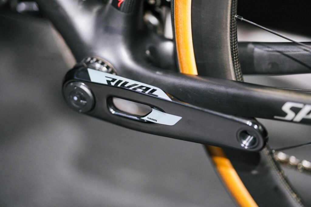 左クランクアームを、SRAM Rival AXS Left Crank Power Meter DUB E1へアップグレードしました。ノーマルクランクからパワーメーター付きへ変更することで、これまで“感覚”に頼っていた出力を数値として捉えられるようになります。