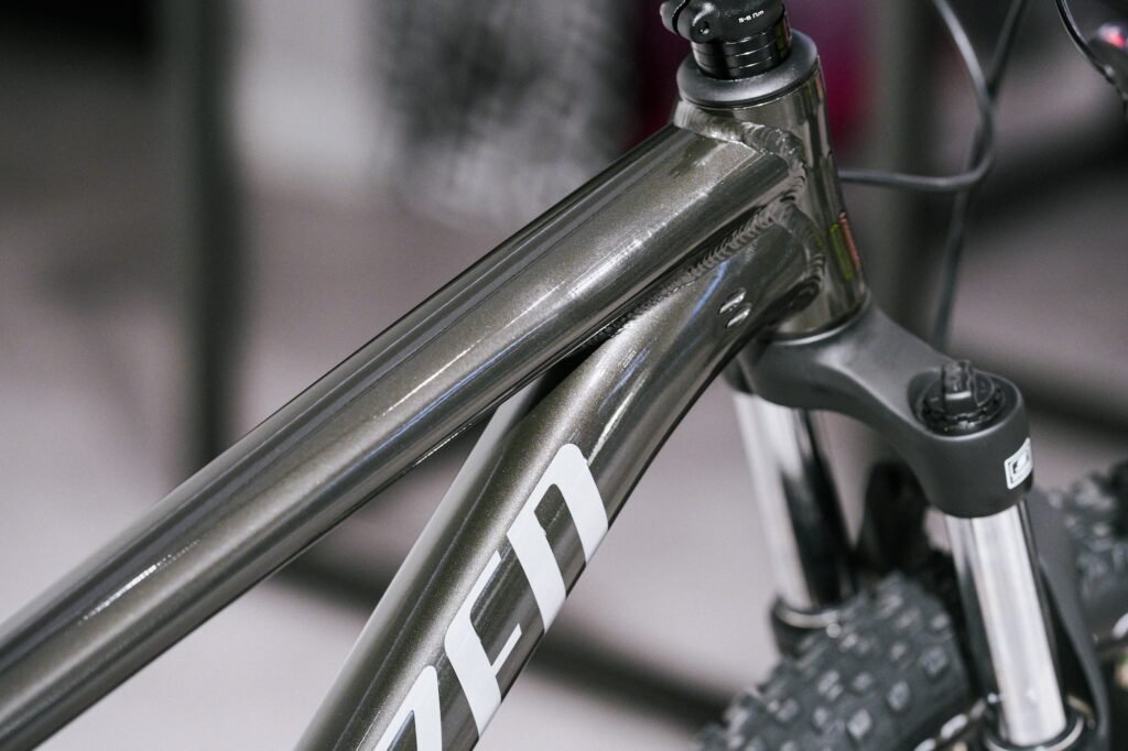 軽量かつ高強度なA1プレミアムアルミフレームを採用。ハイドロフォーミング加工により軽さと剛性を両立し、安心感のある走りを実現しています。内装ケーブルルーティングで見た目もすっきりし、ドロッパーポストにも対応する拡張性の高さも魅力です。