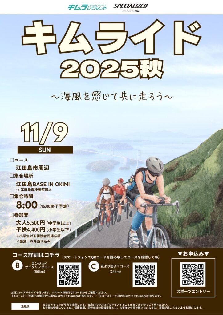 2025年秋も、スペシャライズド広島 × キムラじてんしゃ の合同ライドとして開催します。