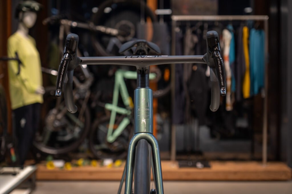Tarmacと同様にブレーキケーブルも内装化することで、ハンドル周りをスタイリッシュに変更。洗練されたAethosの見た目を、さらに美しく仕上げています。