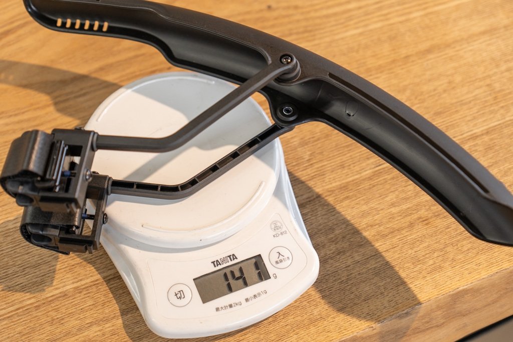 フェンダー後ろ部分を取り外し、短くした場合は重量141gと軽量。
