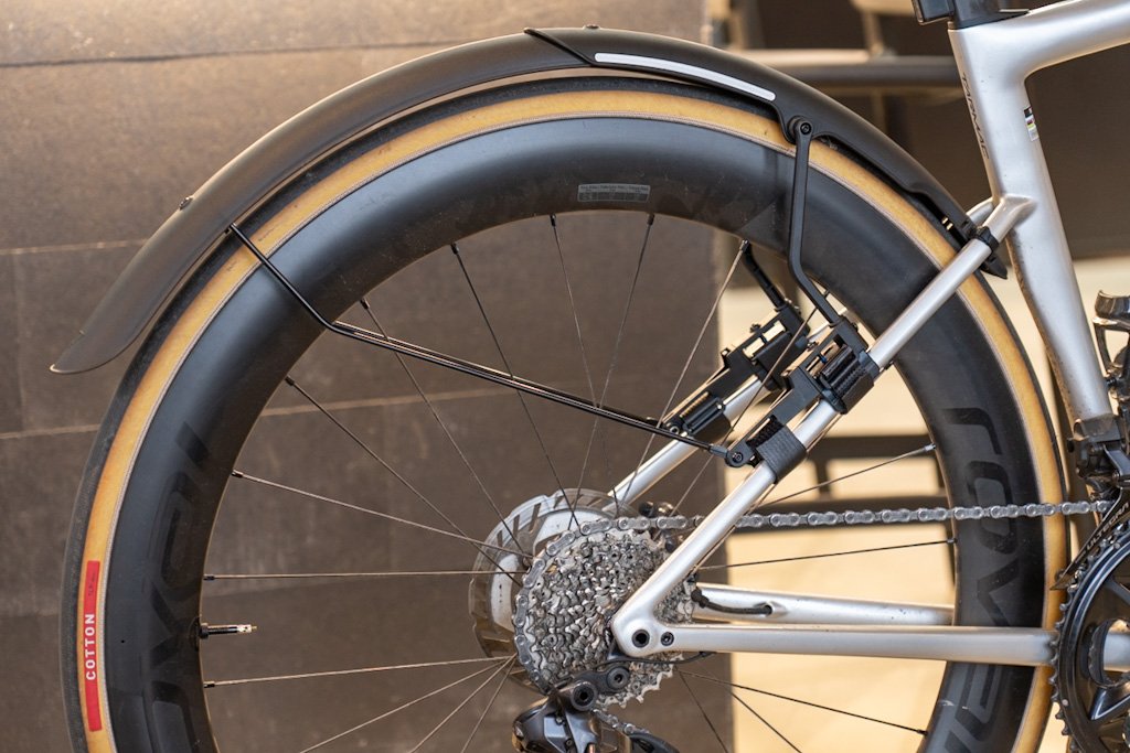 フェンダーが付いていないスポーツバイクで濡れた路面の走行中、後輪が泥水をはね上げてお尻や背中が汚れてしまいますよね。トレーニング中や通勤、通学等でそのようなご経験がある方は多数いらっしゃるのではないでしょうか。