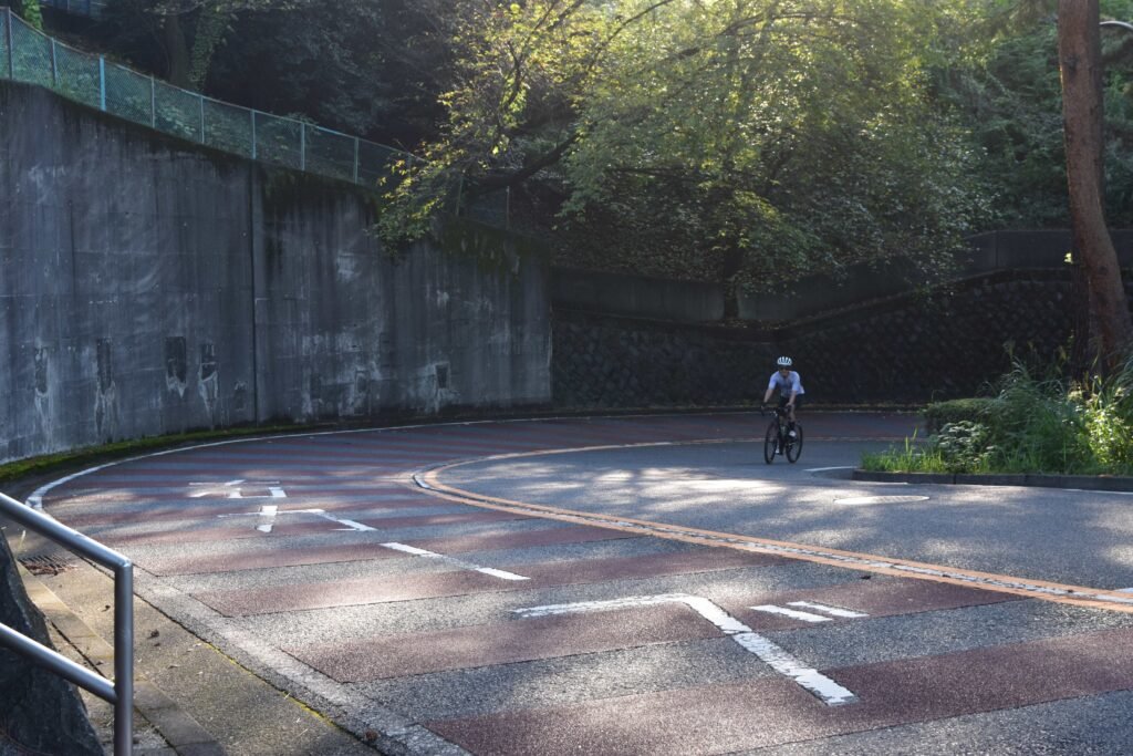 登り始めはやや急ですが、後半に向けて徐々に勾配が緩やかになるため、初心者でも比較的登りやすい坂です。カーブ内側は傾斜が強めなので、ライン取りには注意!