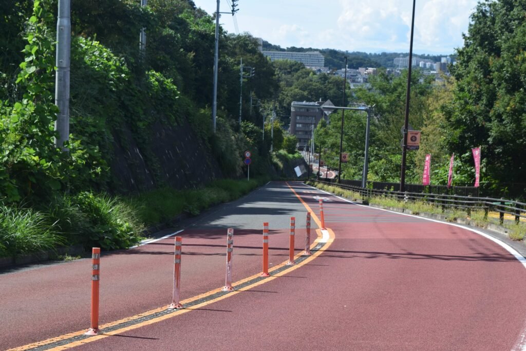 10%前後の勾配が長く続き、桜ヶ丘公園付近でようやく勾配が緩やかになる構成です。