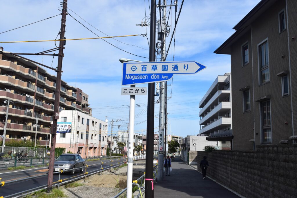京王線百草園駅からすぐの場所にあり、坂の頂上には梅や茶室で有名な「京王百草園」があります。
