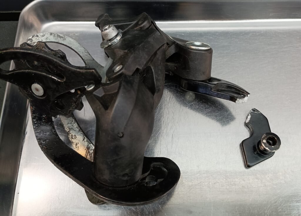 ディレイラーハンガーは、フレームとリアディレイラーをつなぐ小さなアルミパーツです。