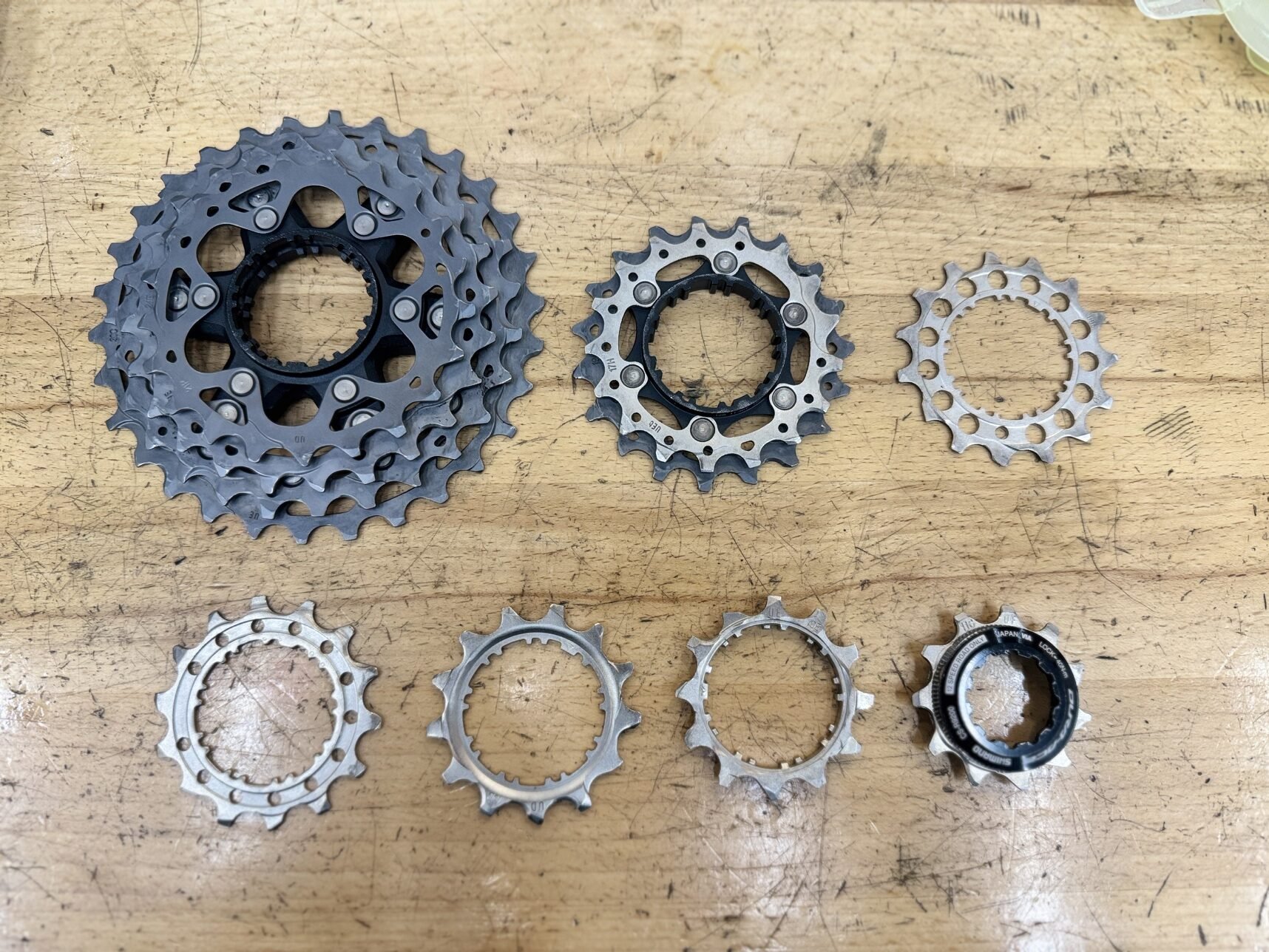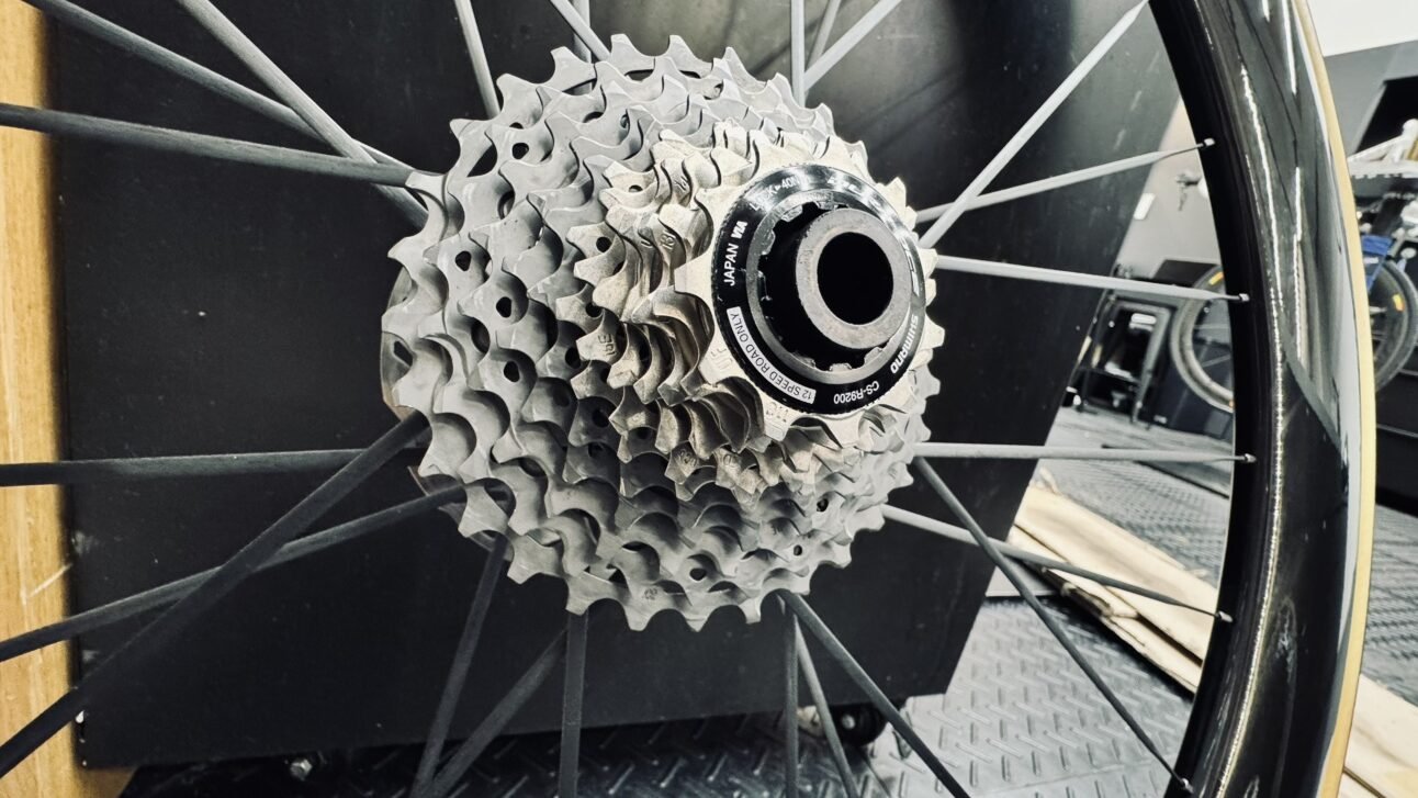 洗浄したスプロケットやホイールをフレームに取り付けていきます。