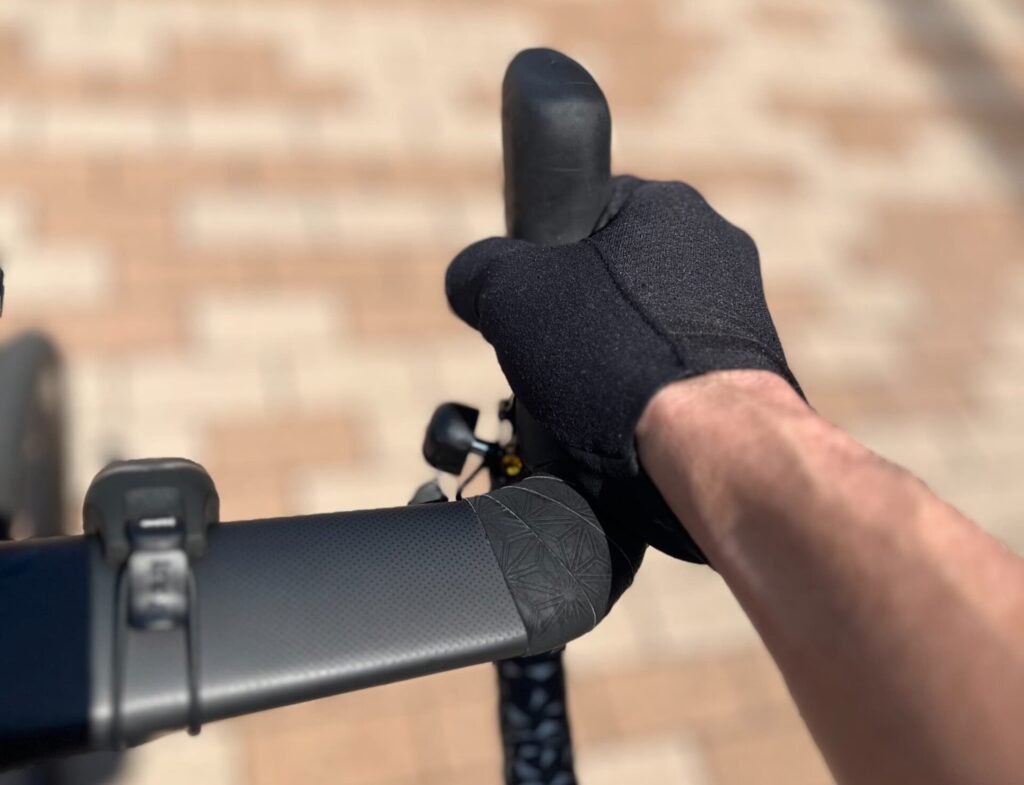 ブラケットポジションはもちろん、ドロップポジションや上ハンドルを握った際も、操作の邪魔になることはほとんどありません。