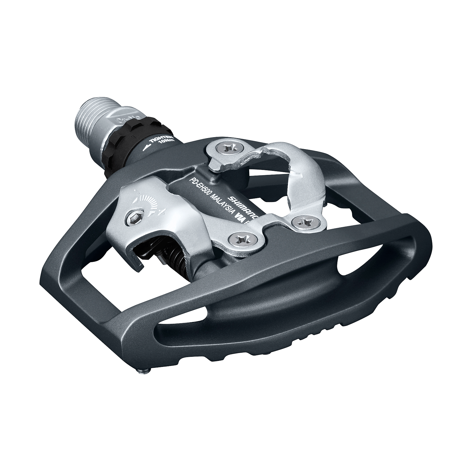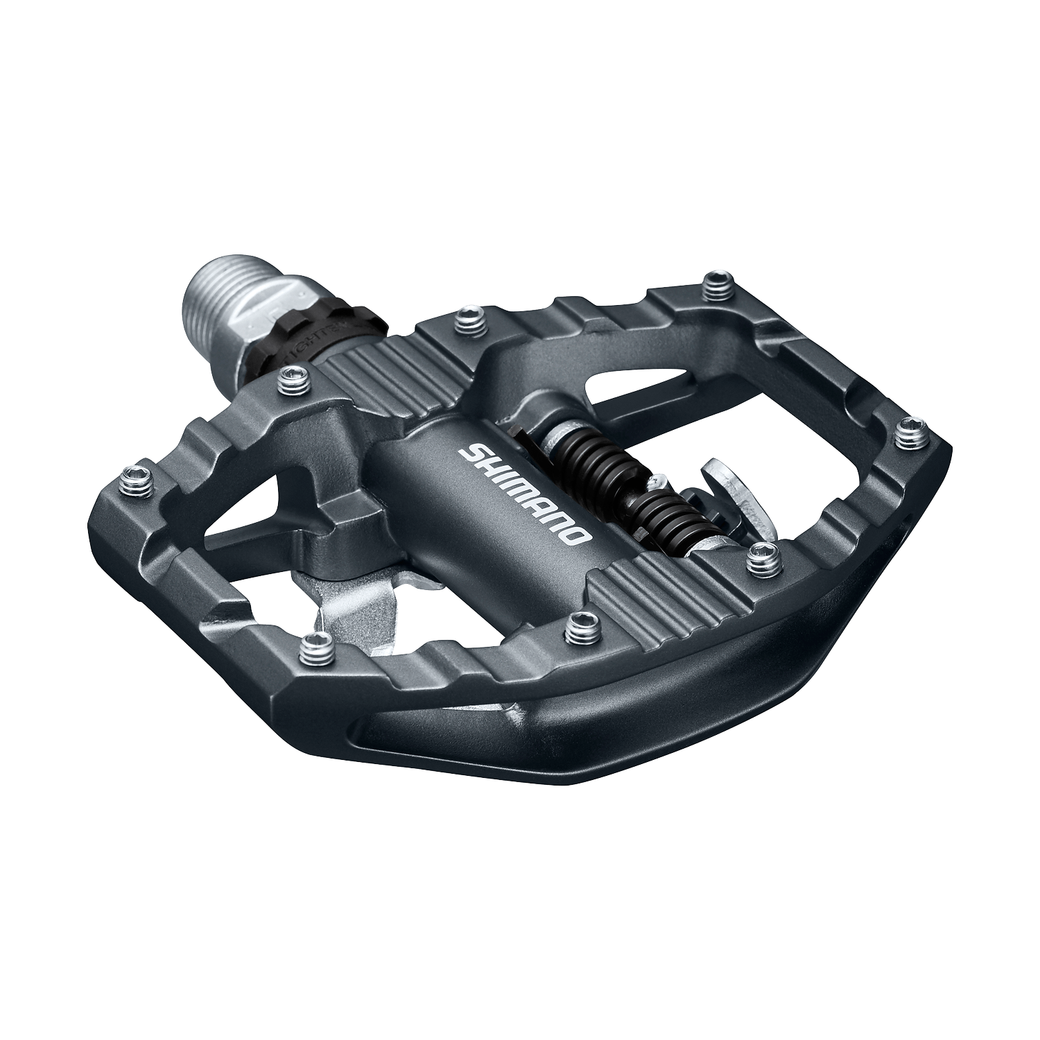 MTBやグラベルなどのオフロードはもちろん、普段使いでも重宝するペダルです。サイズが2種類あり、シューズのサイズによって推奨されているサイズが違います。また、滑り止めにペダルピンが付いていますが、長さの調整が出来る為、ハードなグリップが要求されるMTBのダウンヒルやトレイルでは長めに、街乗りなどでは短めに設定する事が出来ます。