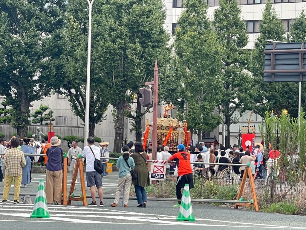 出発直後ですが、熊本市内では例大祭が始まろうとしており、お神輿などが並んでいました。