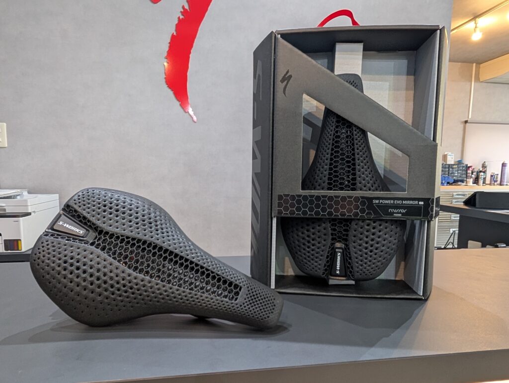 写真の上側は私も愛用しております。S-Works Power With Mirrorサドルで下側がS-Works Power Evo Mirrorとなっております。