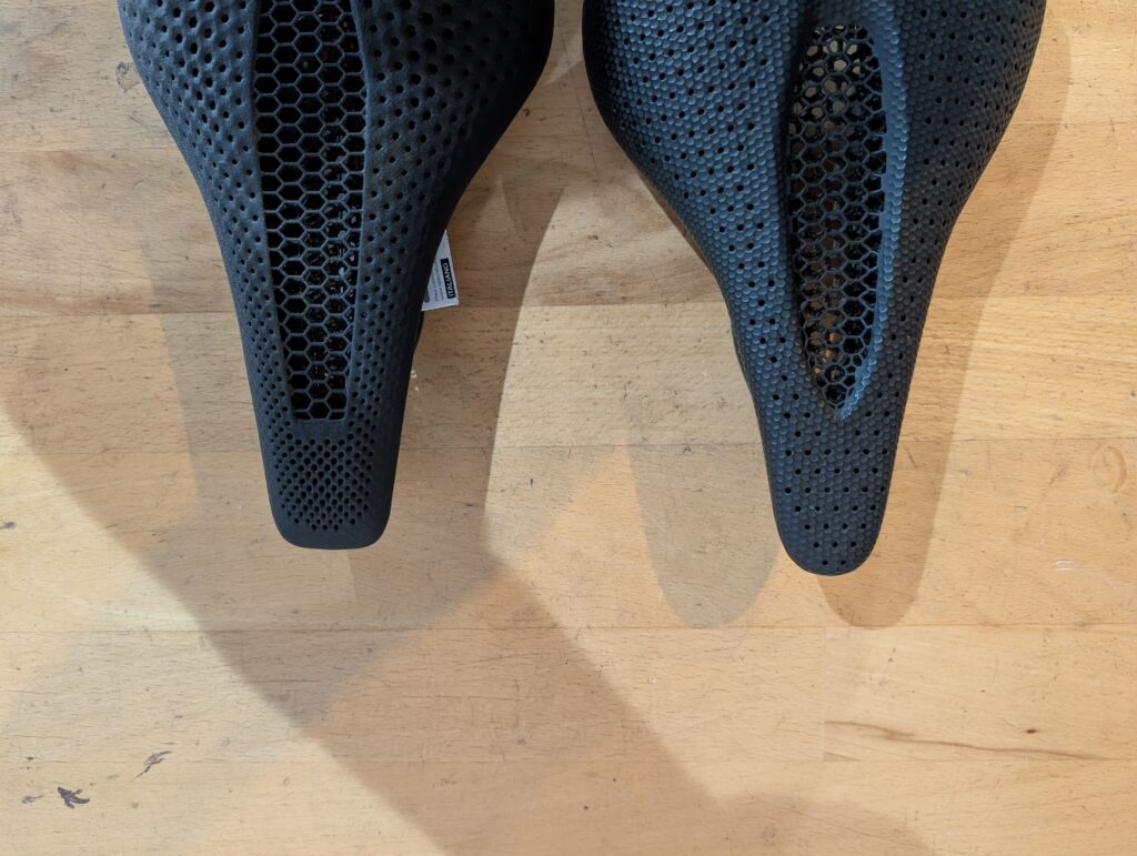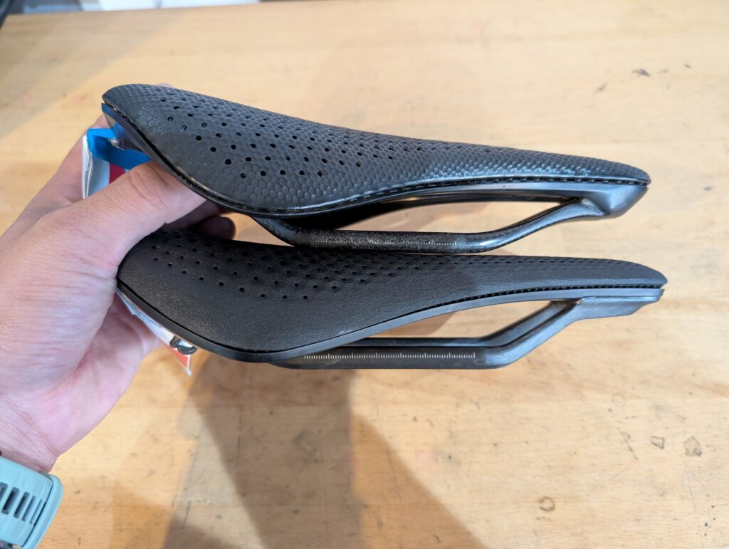 左がPower Evo Mirrorサドルなのですが従来のサドルに比べて四角い形状になっております。