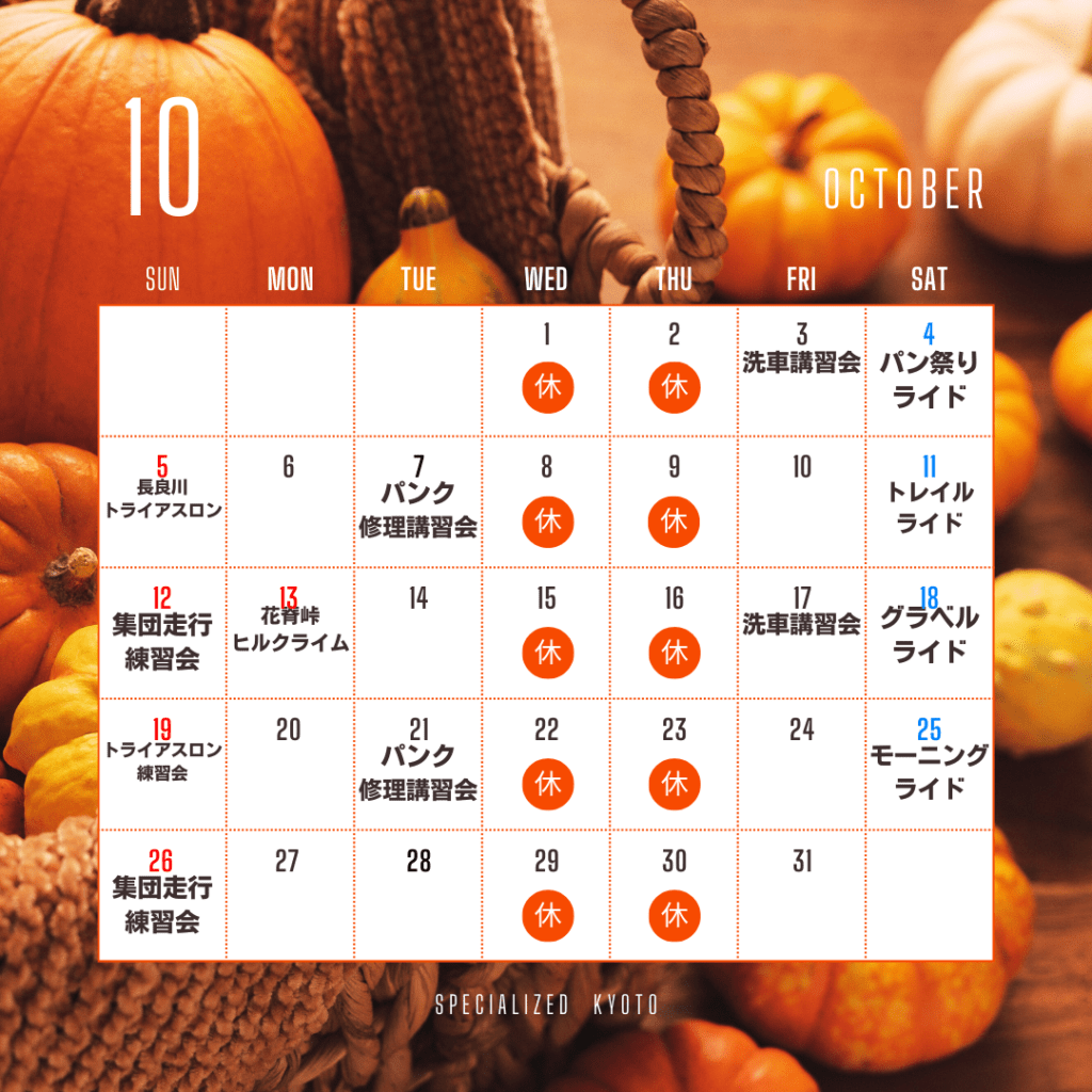 10月になりとても走りやすい気候になってきたので、最後まで安全に楽しく走り切りましょう!