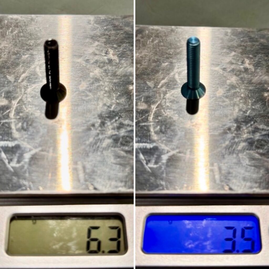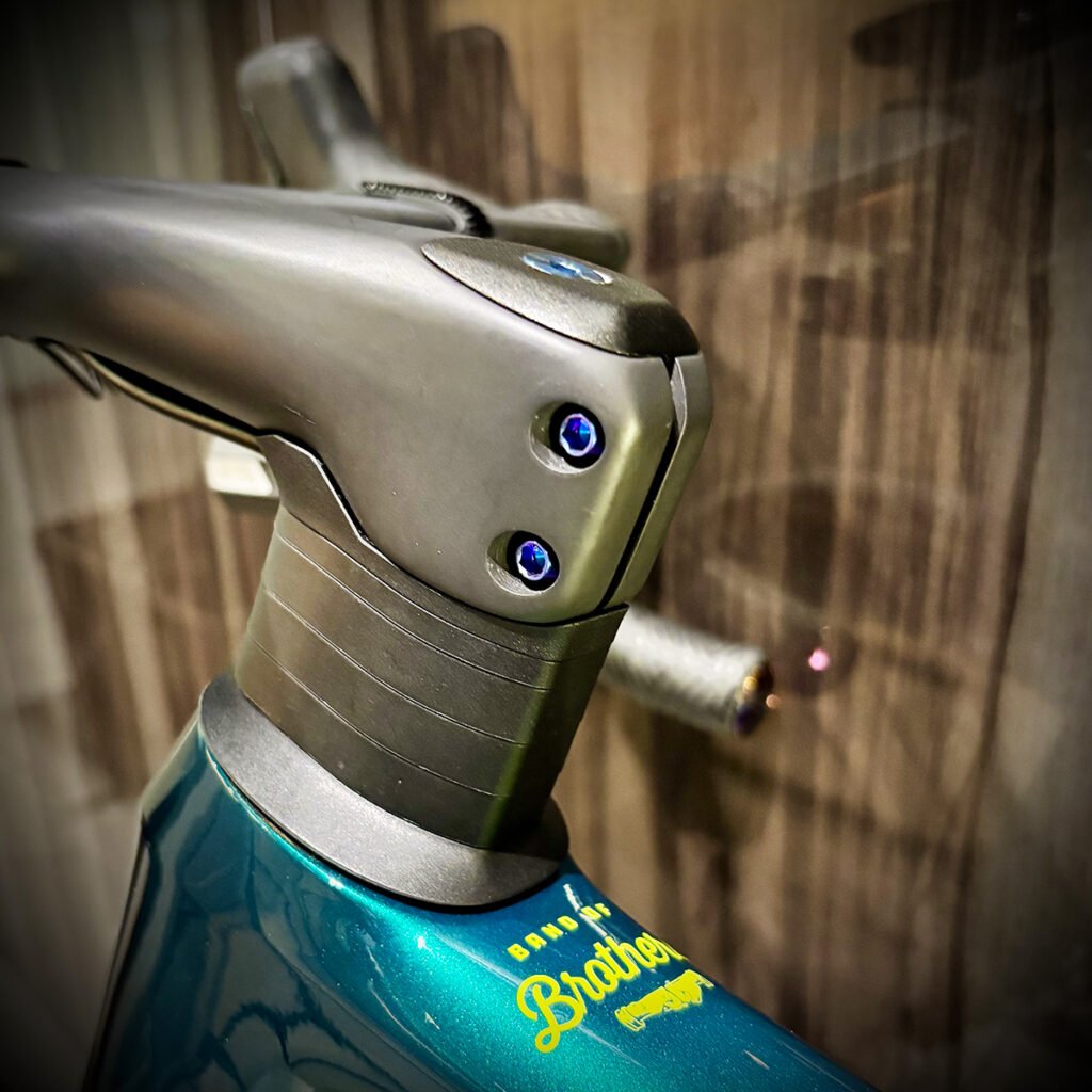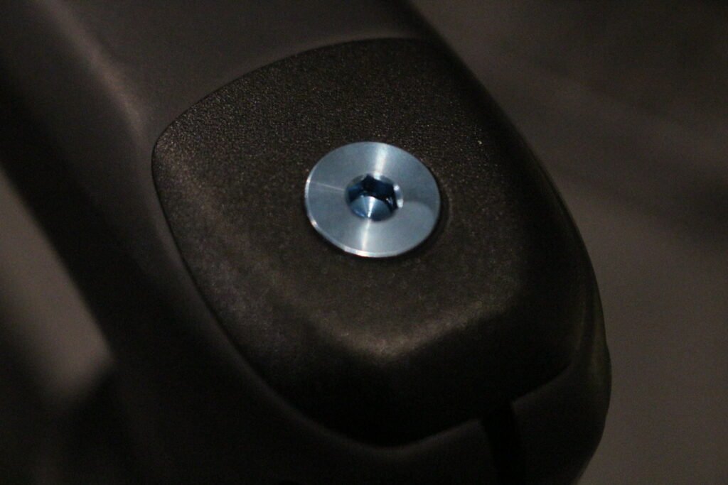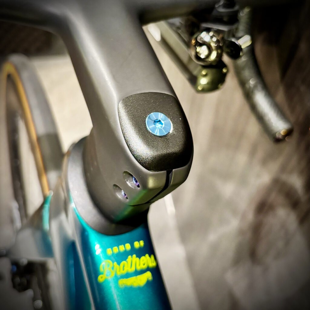 純正ボルトは汗や水でサビやすい素材のものが多く、早めの交換がおすすめです。この部分をチタンボルトに変えることで、軽量化、防錆、そしてワンポイントのカラーカスタムが全て実現します!