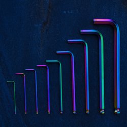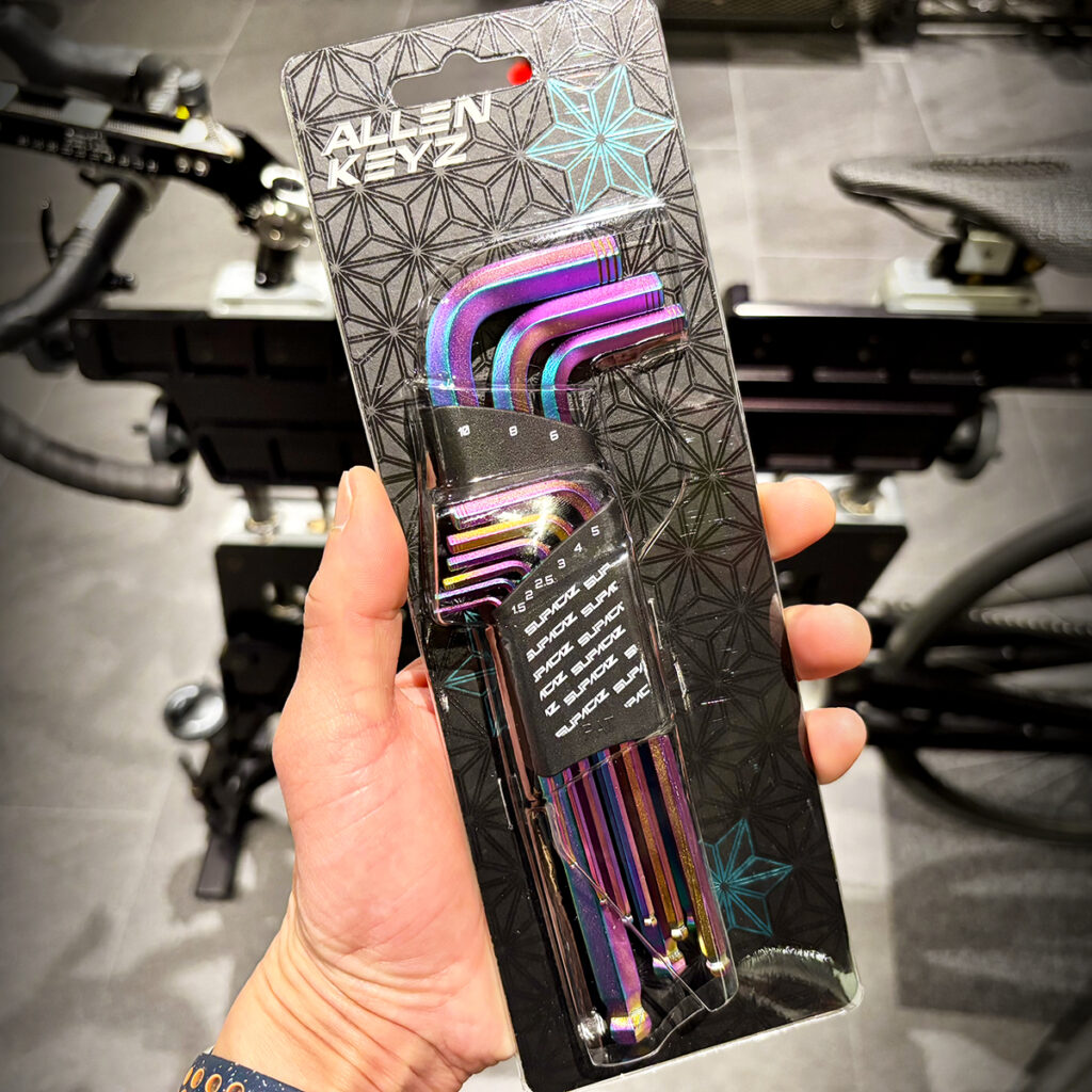 メンテナンスが楽しくなる、スパカズらしい鮮やかな「オイルスリック」カラーのアーレンキー(六角レンチ)セットです。