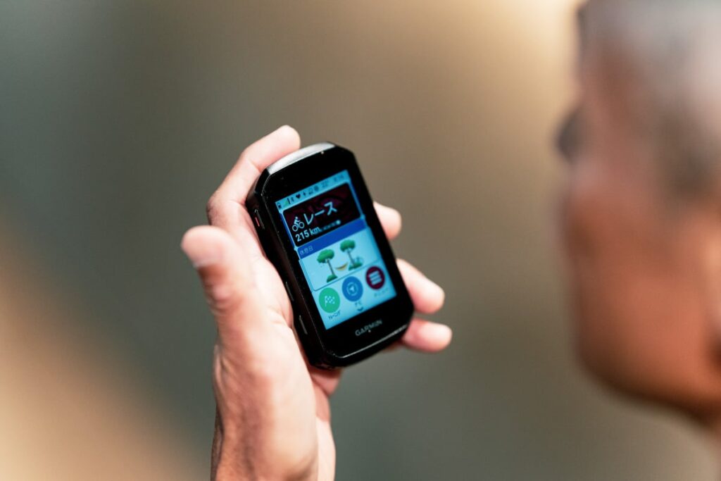 Edge 1050譲りの高精細なディスプレイは、直射日光下や前傾姿勢でも文字がくっきり見えます。操作感もスマホのようにサクサク動くので、ストレスが全くありません。
