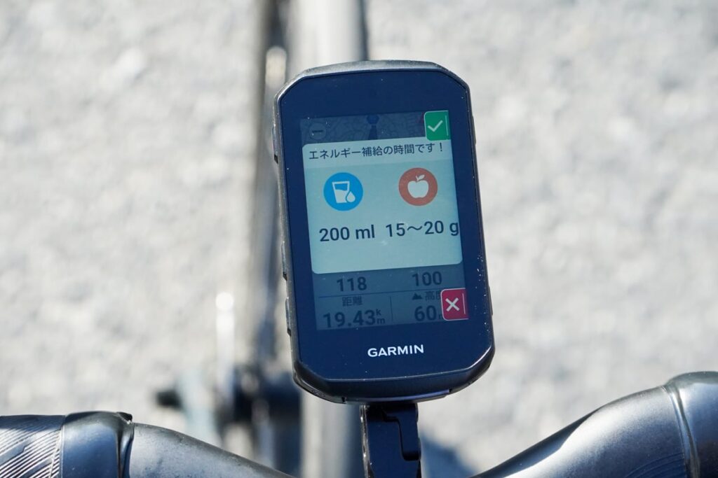 夢中で走っていると補給を忘れがちですが、これがあればハンガーノックを防ぎ、最後まで元気に走り切ることができます。アイアンマンのような長距離レースはもちろん、週末のサイクリングでも「疲れる前に補給する」習慣が身につく、非常に実戦的な機能とのことです。