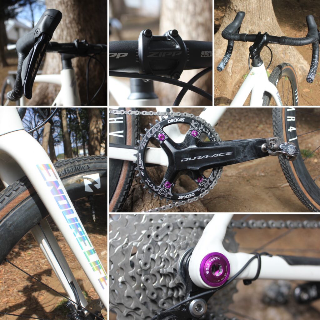 私のバイクは、ReynoldsのカーボンホイールやDURA-ACEクランク、パープルのボルト類でカスタムし、よりレース仕様に仕上げています。特にDSWのフレームは、担ぎセクションが多いCXでもその軽さが大きなアドバンテージになりますね。