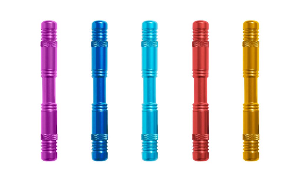 両端にプラグをセットでき、太さの異なるプラグを瞬時に使い分けられるプロ仕様。アルマイト加工された美しいカラーバリエーションも魅力です。バイクのアクセントにも◎。