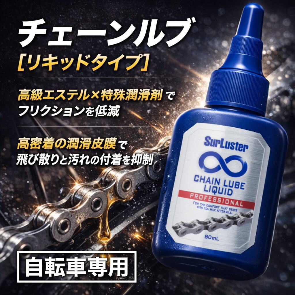 今回は、数多くのプロロードレースチームをサポートし、現場の声を形にしている日本屈指のケミカルブランド『SurLuster(シュアラスター)』より、プロクオリティのメンテナンスアイテム2種が入荷いたしましたのでご紹介します!