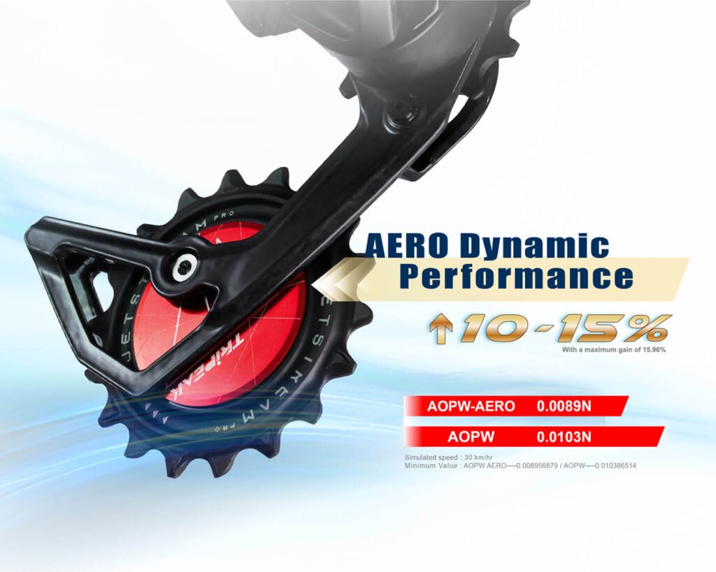 最大の特徴は、プーリー部分を覆う「エアロ・フローカバー」です。 シミュレーションデータによると、従来のビッグプーリーと比較して空気抵抗を10~15%(最大15.96%)削減。わずかなタイム差を争うレースシーンはもちろん、高速巡航を維持したいロングライダーにも大きなメリットをもたらします。