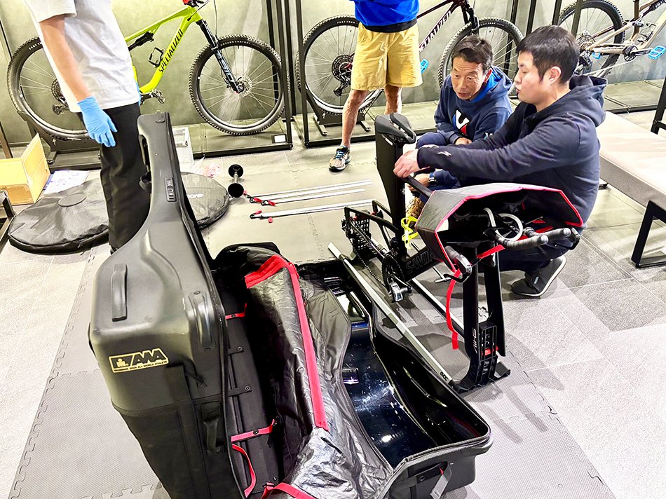 商品お渡し時に、少しコツのいるケースの組立方法をスタッフがマンツーマンで丁寧にレクチャー・サポートいたします。遠征前の不安を解消し、安心してレースに臨んでいただけます。